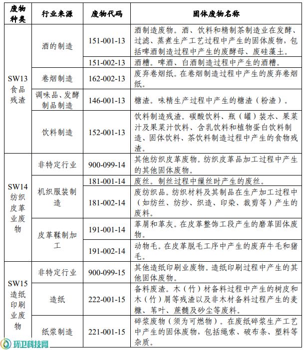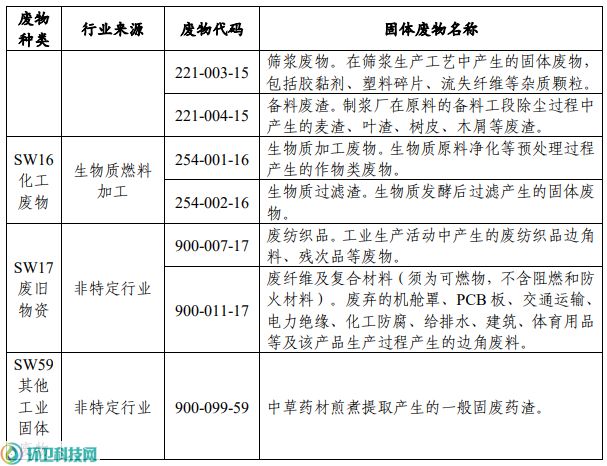 生活垃圾焚烧设施协同处置一般工业固体废物推荐名录