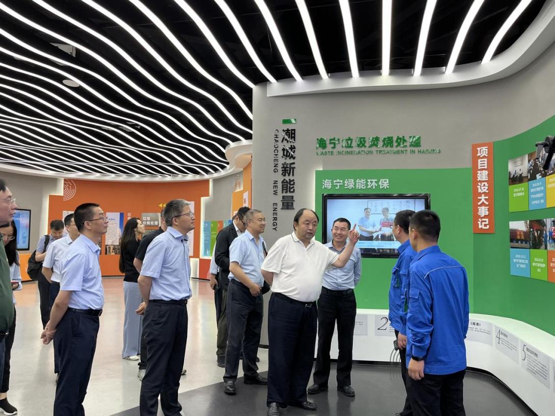 岳鹏一行参观了项目党群活动中心、环保科普展示馆及生产现场,听取了海宁扩建公司关于项目规模、设计理念、垃圾处理工艺、垃圾吨处理量等情况的汇报。岳鹏强调,海宁扩建项目作为绿色动力华东地区的标杆项目,一要充分发挥先锋模范作用,继续做好污泥干化处理工艺的研究和升级,为集团公司拓展新的利润增长点做好借鉴;二要践行“首善精神”,充分彰显国企社会担当,为当地建设“无废城市”做好保障和兜底。