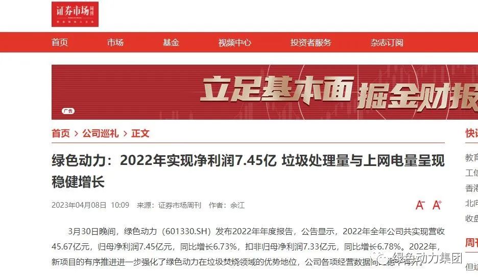 3月,必一运动官网发布2022年年度报告。公告显示,绿色动力全年垃圾处理量与上网电量呈现稳健增长,共实现营收45.67亿元,归母净利润7.45亿元,同比增长6.73%,扣非归母净利润7.33亿元,同比增长6.78%。各项生产指标和经营数据同比稳中有升,集团在垃圾焚烧发电领域的优势地位进一步增强。