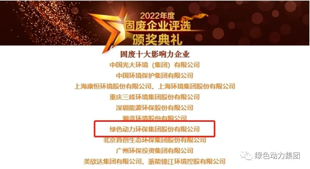 1月,绿色动力获得了E20环境平台颁发的“2022年度固废十大影响力企业”奖项,这也是集团第13次蝉联该荣誉。